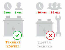 Оператор производит замену за 2 минуты без ожидания зарядки